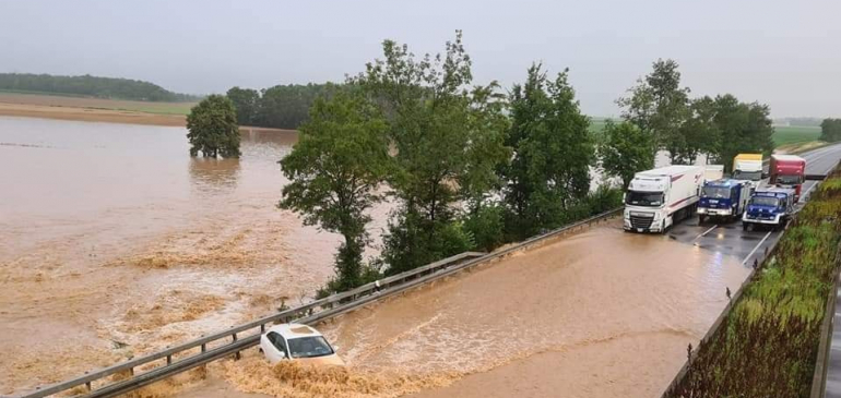 Az autópályákon is áll ilyenkor a felgyűlt csapadék, 20km/h-val lehet haladni. Félelmetes.