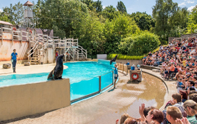 Az itt megvásárolt jeggyel azon túl, hogy végignézhettük az állatokban gazdag parkot, 3 előadásra is belépési lehetőséget kaptunk. A hangosan beszélő folyamatosan mondja, hogy melyik előadás mikor kezdődik, le sem tudsz róluk maradni. :)