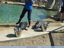 Egy másik helyszín műsorszáma is a fókák fellépése volt, de ott az állatpark lakóinak a bemutatása zajlott. Ha jól emlékszem a legidősebb példány 30 éves lehetett. De nem látszott rajta a kora, épp oly vidáman úszkált, ugrott a partra és osztotta a pacsikat, mint a többiek.