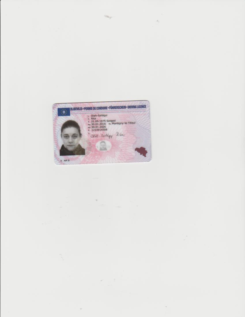 Tehát az ügy intézés menete az volt, hogy kiírogatta a jogsimról az adatokat, majd betette a fiókba a plasztik kártyát és elkérte a férjem telefonszámát azért, mert én el fogok utazni és ha megjön az új, belga fényképes igazolványom, akkor felhívja a férjemet, átadja neki, ő meg majd utánam küldi Magyarországra.